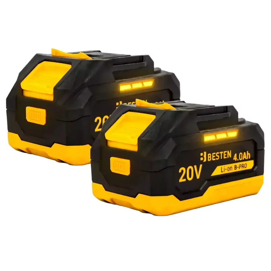 System akumulatorowy B-PRO 20 V gwarantuje pełną mobilność oraz kompatybilność z innymi narzędziami BESTEN. Dwa akumulatory 4.0 Ah zapewniają ciągłość pracy - jeden pracuje, drugi się ładuje.