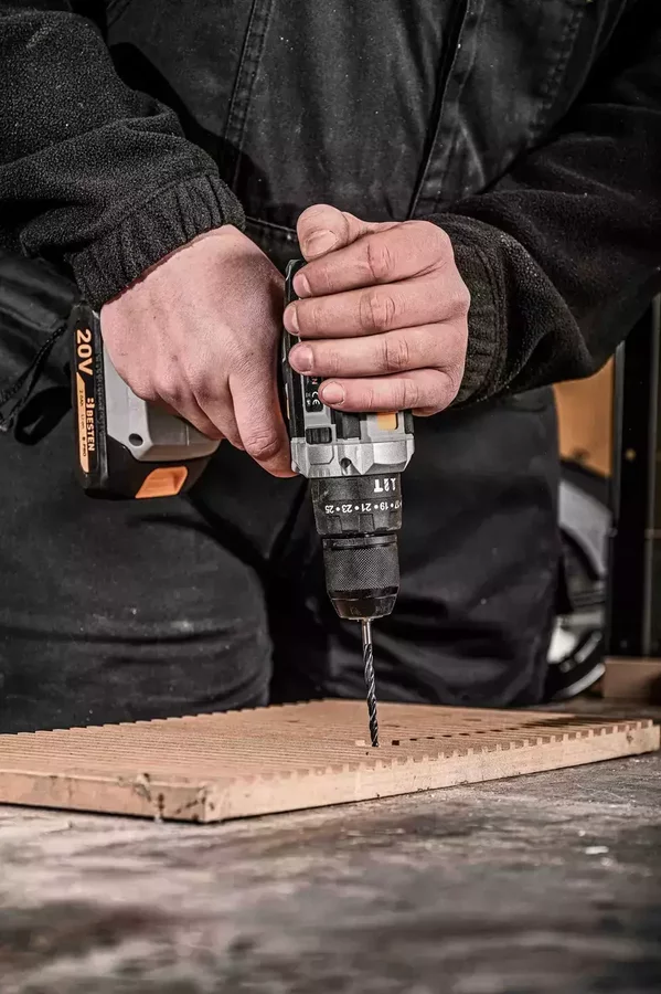 BESTEN BE0002905 łączy w sobie funkcjonalność wiertarki, wkrętarki oraz urządzenia z udarem w jednym, kompaktowym narzędziu. Wysoki moment obrotowy 50 Nm zapewnia pewne wkręcanie w twarde drewno, elementy konstrukcyjne oraz długie wkręty, a funkcja udaru umożliwia wiercenie w murze i cegle bez potrzeby sięgania po osobną młotowiertarkę przy lżejszych pracach.