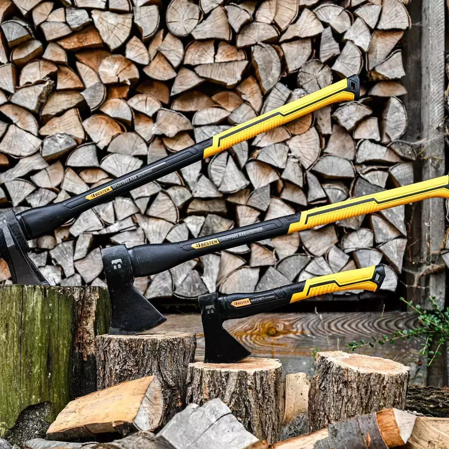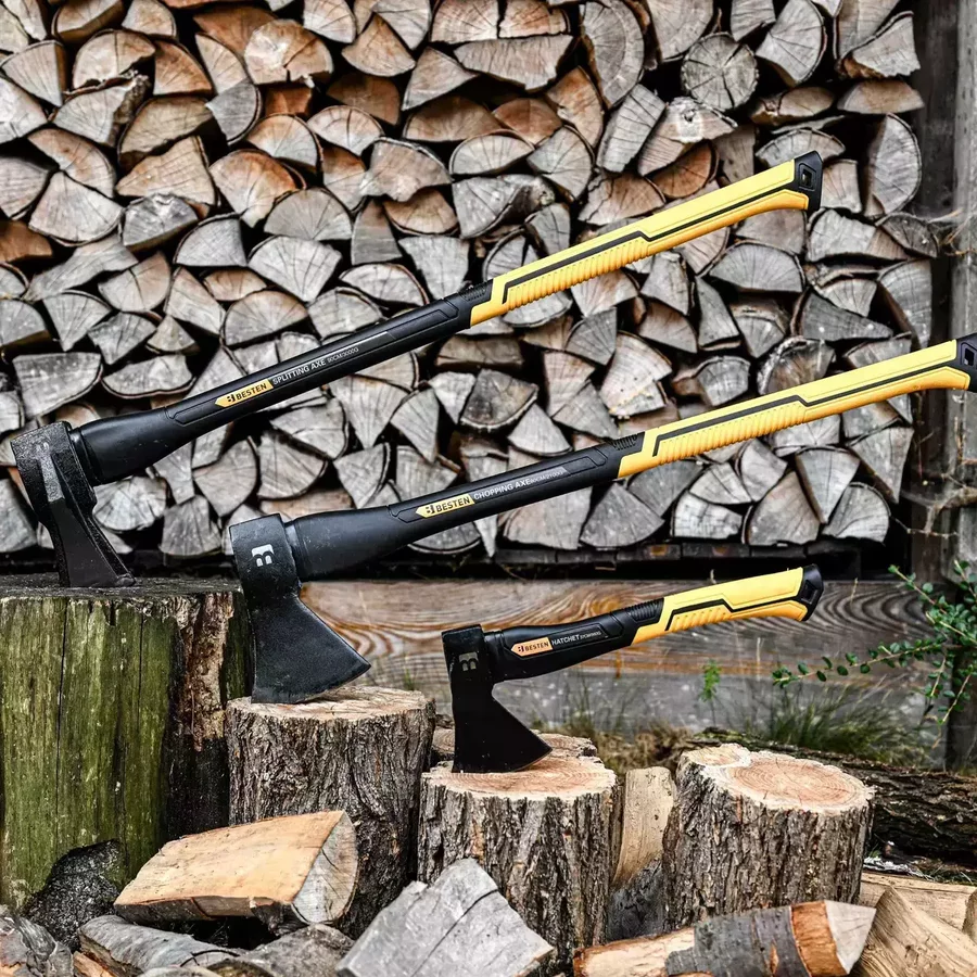 Zestaw siekier BESTEN BE0002887 to komplet trzech narzędzi (960 g, 2100 g, 3000 g), które sprawdzą się w każdych warunkach - od przycinania gałęzi po rozłupywanie grubych bali. Kute głowice ze stali wysokowęglowej oraz trzonki z włókna szklanego z antypoślizgową rękojeścią gwarantują trwałość, wygodę i bezpieczeństwo pracy.